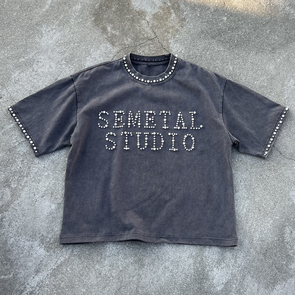 เสื้อยืดสตรีทแวร์สไตล์เรโทร ดีไซน์เนอร์ ประดับมุก เสื้อยืดสั่งทำพิเศษ ประดับคริสตัล ผู้ผลิตเสื้อยืด ล้างสีแบบ Acid Wash ผ้าฝ้ายทรงโอเวอร์ไซส์