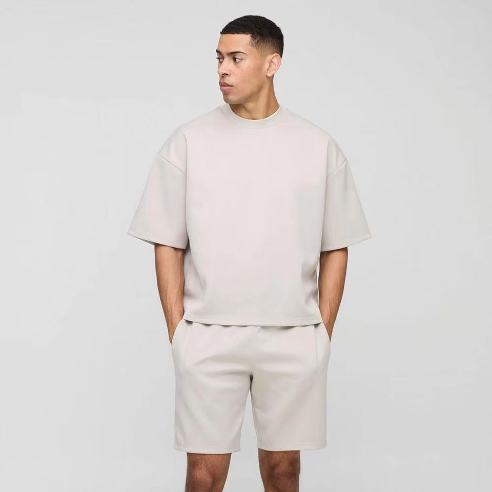 กางเกงขาสั้นเสื้อผ้าแนวสตรีทและเสื้อยืดผ้าฝ้าย100% ชุดแฝดทรงหลวมโลโก้ตามสั่ง