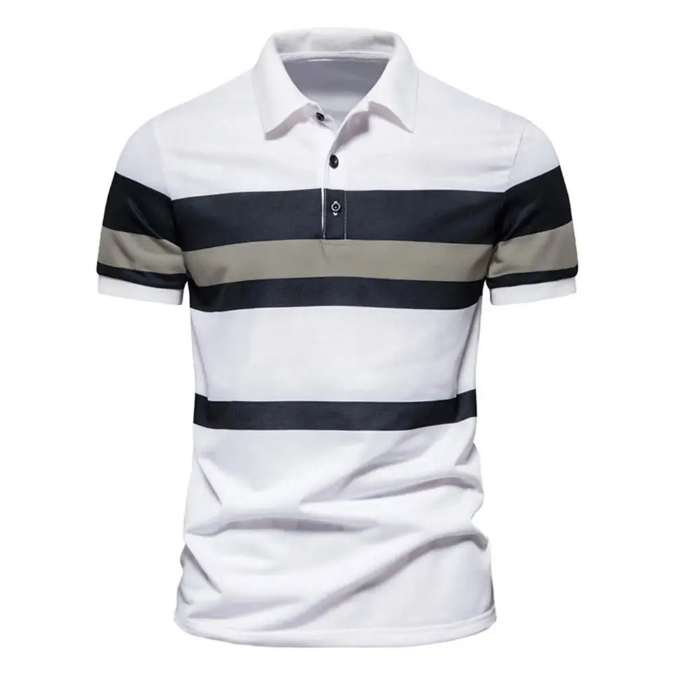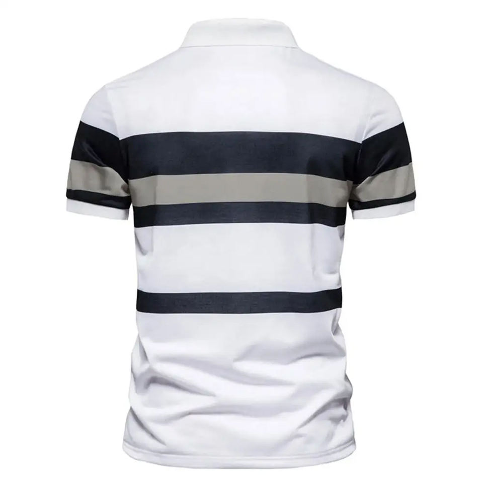 เสื้อโปโลผ้าคอตตอนผ้าโพลีเอสเตอร์สำหรับผู้ชายเสื้อแนวสตรีทสีทึบสำหรับ100% โลโก้ตามสั่งปักลาย