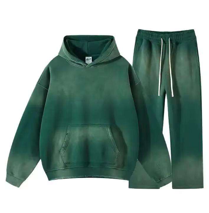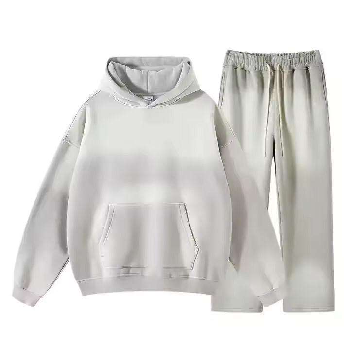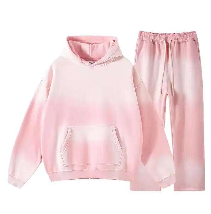 ชุดสตรีทแวร์ ซันเฟดวอช ไซส์พลัส เสื้อฮู้ดดี้แบบสวม กางเกงวอร์ม ชุดแทรคสูท ฤดูหนาว ลายพิมพ์เรียบ สไตล์หลวม