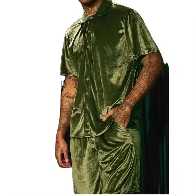 ชุดเซ็ตเสื้อผ้าผู้ชายสไตล์สตรีทแวร์สำหรับฤดูร้อน ผ้ากำมะหยี่คุณภาพสูง เสื้อและกางเกงขาสั้น ไซส์พลัส สีพื้น ชุดลำลอง