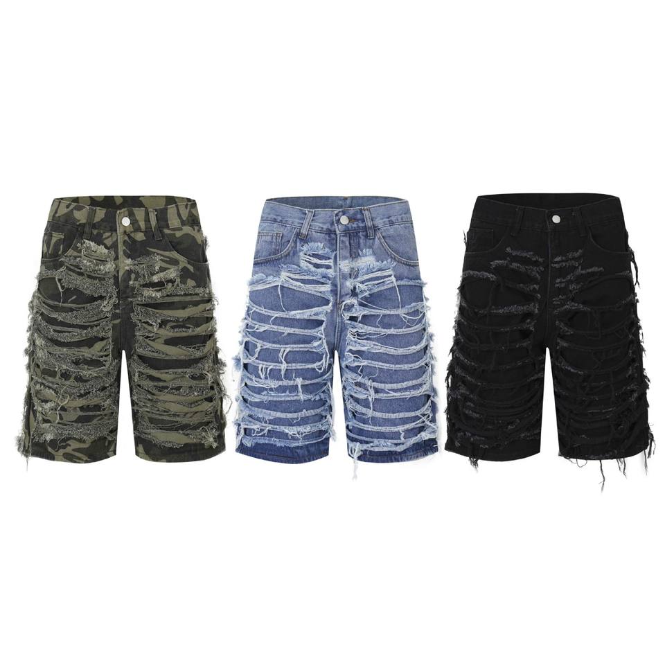 กางเกงขาสั้นผ้ายีนส์ยืดไม่ยืดสำหรับผู้ชายในฤดูร้อนชุดสตรีทแวร์ฟิตเนสตาข่ายเฟรนช์เทอร์รี่ยิมกางเกงขาสั้น XS"