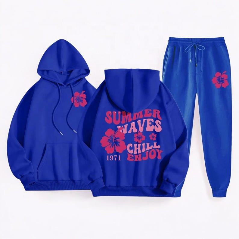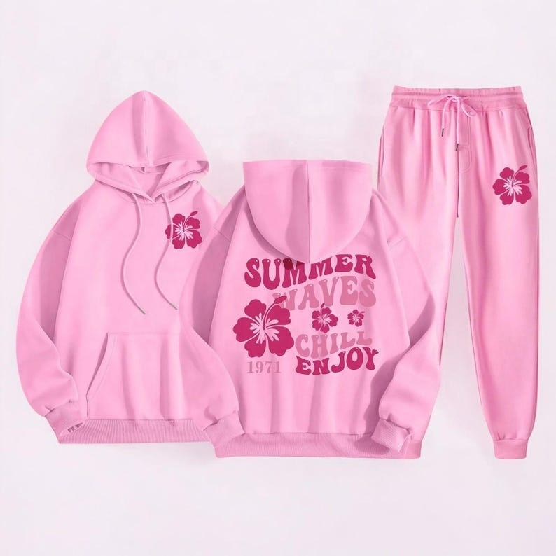 ชุดแทรคสูทสตรีทแวร์พร้อมเสื้อฮู้ดลายกราฟิกและกางเกงขายาวเข้าชุดสำหรับใส่ลำลองทุกวัน ราคาสุดคุ้ม สไตล์คนเมือง