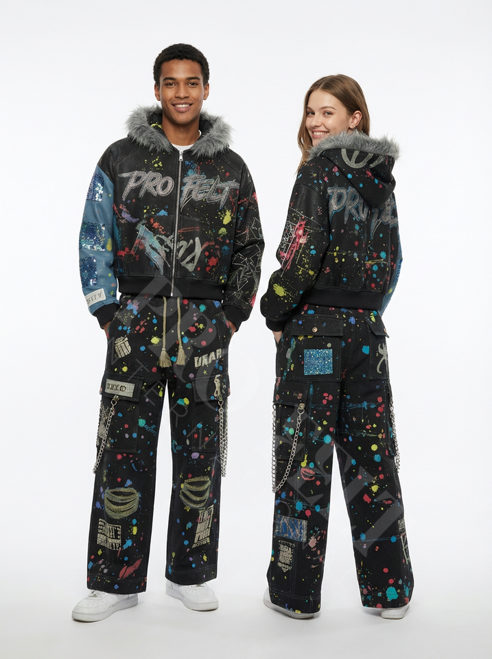 เทคนิค:การเย็บปะติดปะต่อกัน, ล้างกรด, อัตโนมัติตัด, เสื้อผ้าย้อม, พิมพ์ลาย, ล้าง, ล้างสารฟอกสี