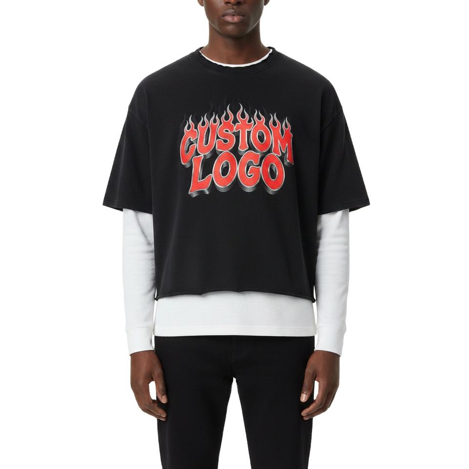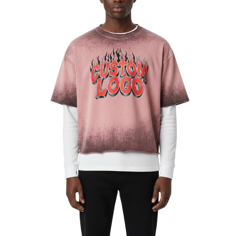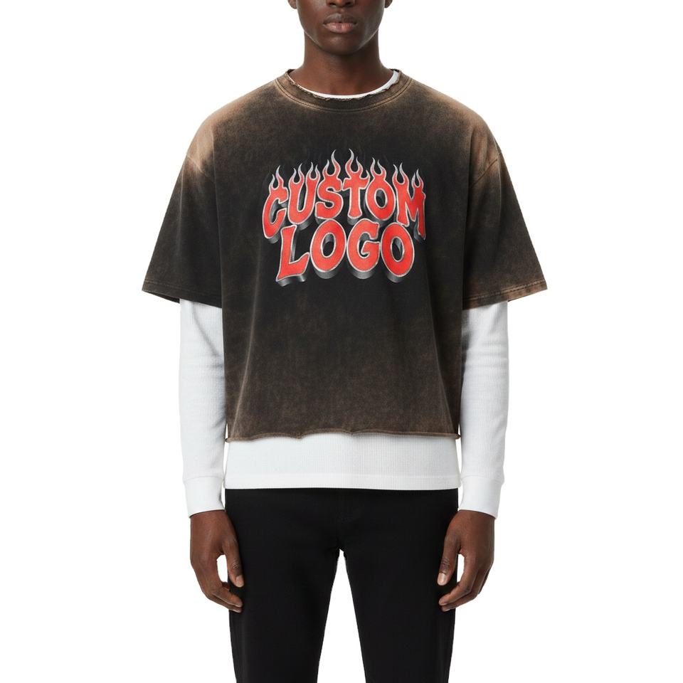 เสื้อยืดสตรีทแวร์วินเทจ พิมพ์ลายโลโก้แบบสกรีนเอง สีซีดจาง สไตล์ผู้ชาย ผ้าสองชั้น 300 320GSM แขนยาว รุ่น 2026