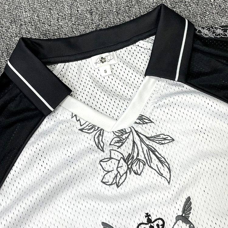 เสื้อฟุตบอลสไตล์สตรีทแวร์วินเทจ ดีไซน์ตาข่ายแบบสั่งทำ ทรงหลวม ระบายอากาศได้ดี ไซส์ใหญ่