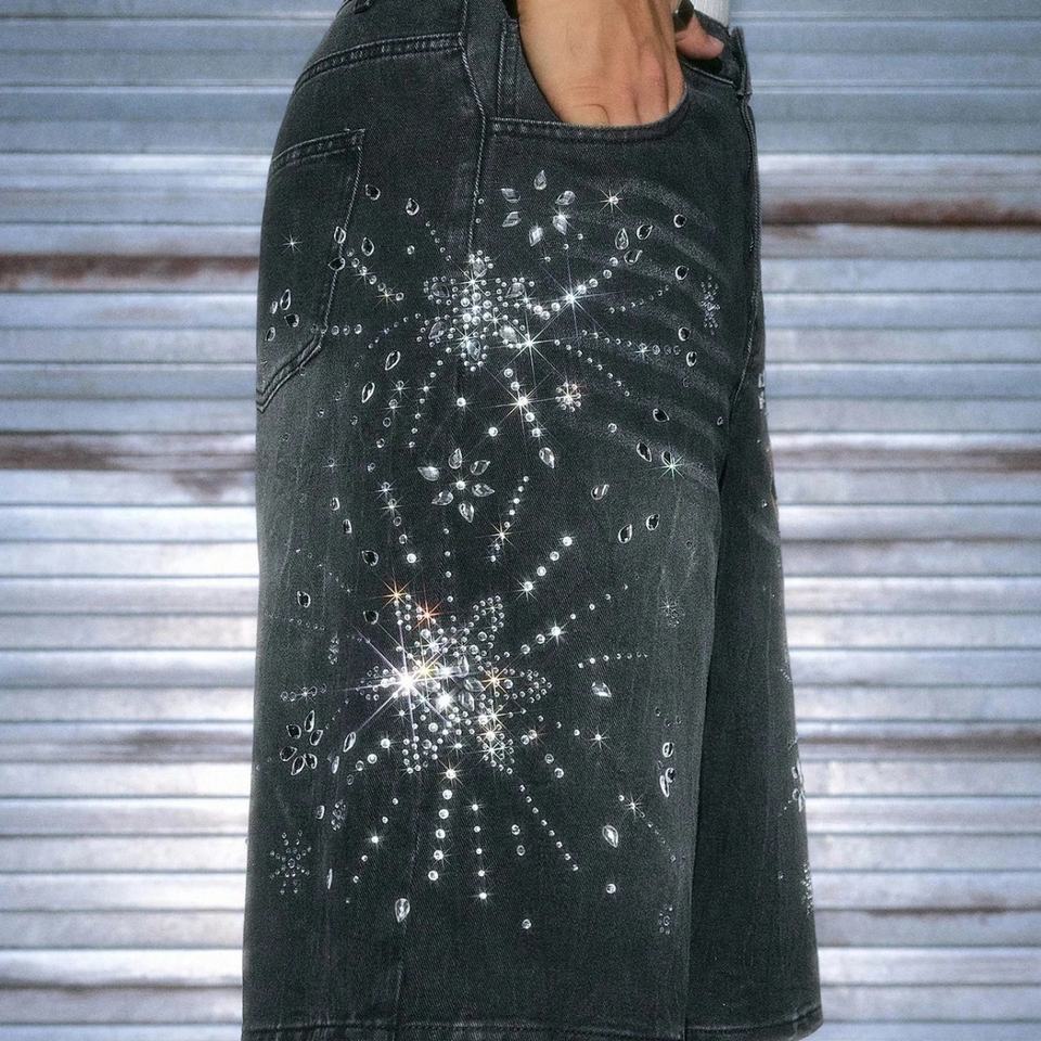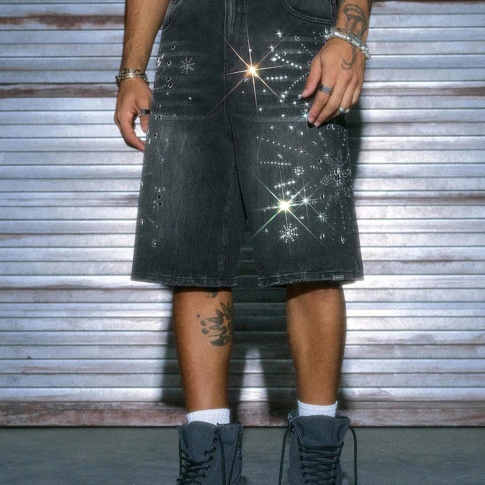 หมายเลขรุ่น:Rhinestone Print Men's Knee Length Denim Shorts