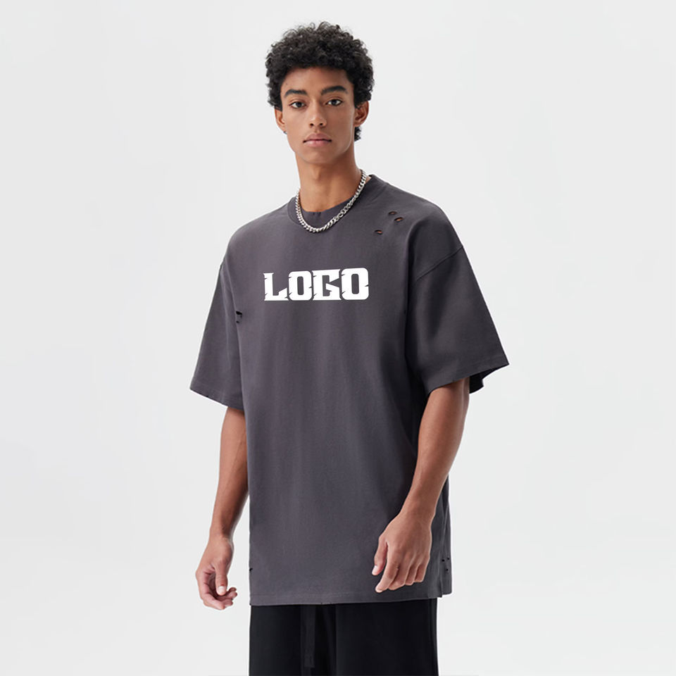 เสื้อสตรีทแวร์ขายส่ง ผ้าโพลีเอสเตอร์/คอตตอนเนื้อหนัก 300GSM ล้างสีแบบแอซิดวอช ทำลายแบบดิสเทรส สกรีนลายตามสั่ง แขนสั้น ทรงโอเวอร์ไซส์ สำหรับผู้ชาย