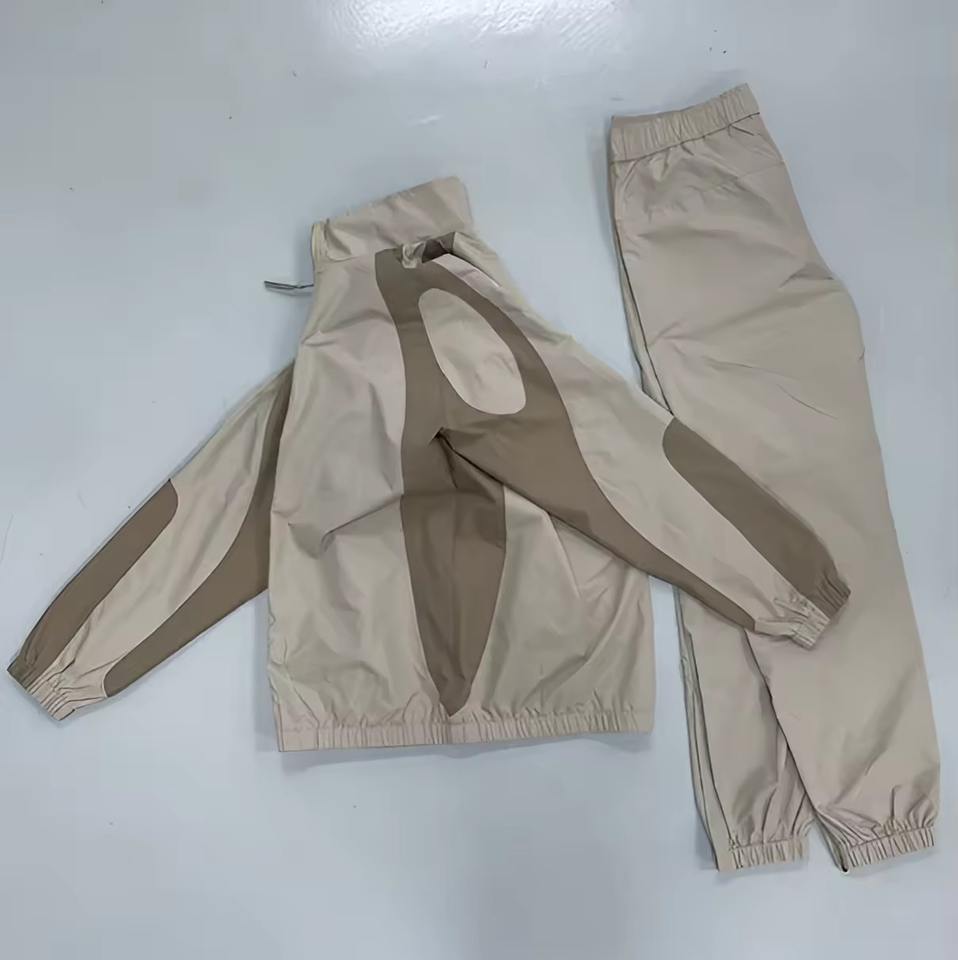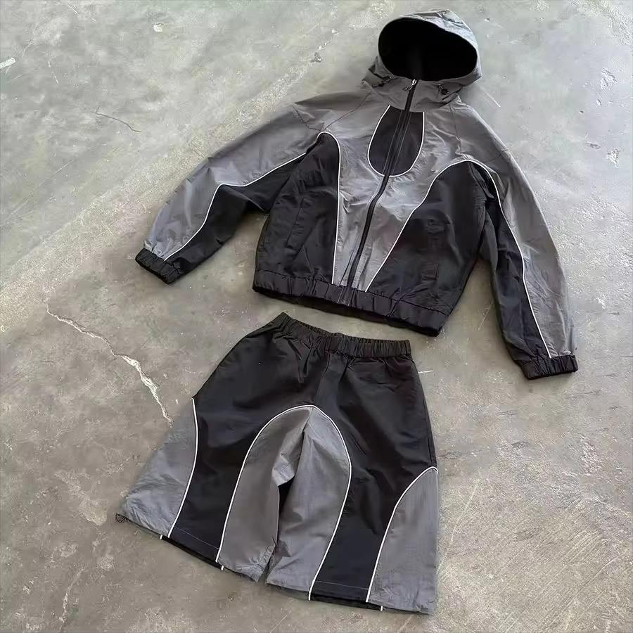 ชุดเซ็ตเสื้อแจ็คเก็ตซิปและกางเกงขายาวสไตล์สตรีทแวร์ น้ำหนักเบา สำหรับผู้ชาย แบบสองชิ้น กันลม สามารถสั่งทำได้