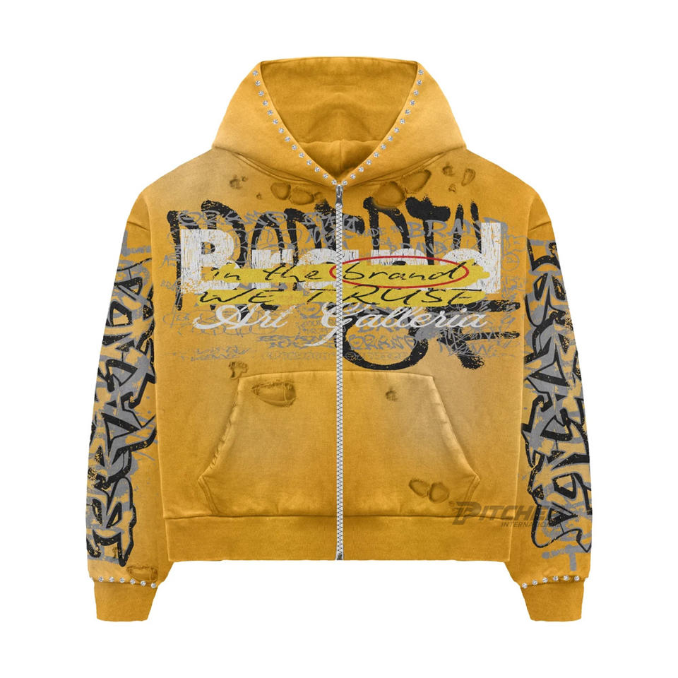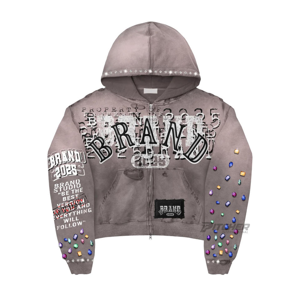 เสื้อฮู้ดดี้ทรงบ็อกซี่ผ้าคอตตอนหนานุ่ม สไตล์สตรีทแวร์ ล้างสีแบบแอซิดวอช แต่งดีเทลขาดๆ พร้อมงานปักและพิมพ์ลายดิจิทัล สำหรับฤดูหนาว ใส่ได้ทั้งชายและหญิง