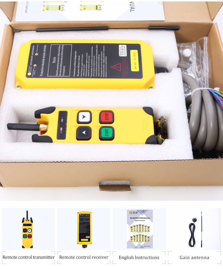 รีโมทควบคุมเครนไร้สายแบบอุตสาหกรรม12V และ24V พร้อมรหัสคงที่