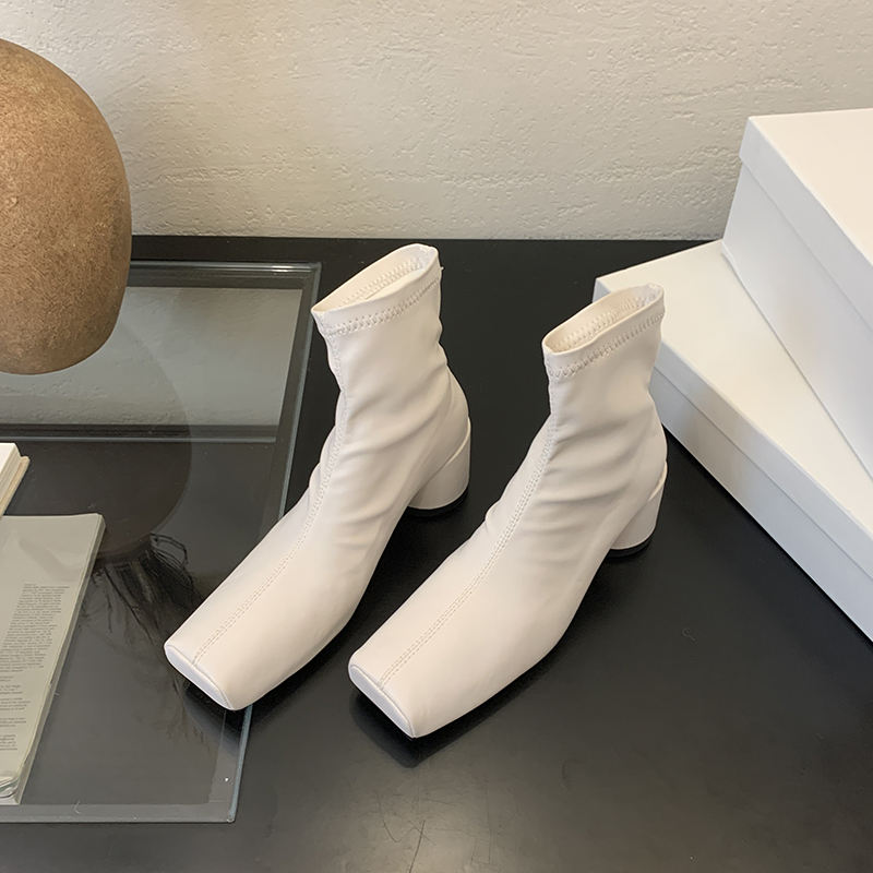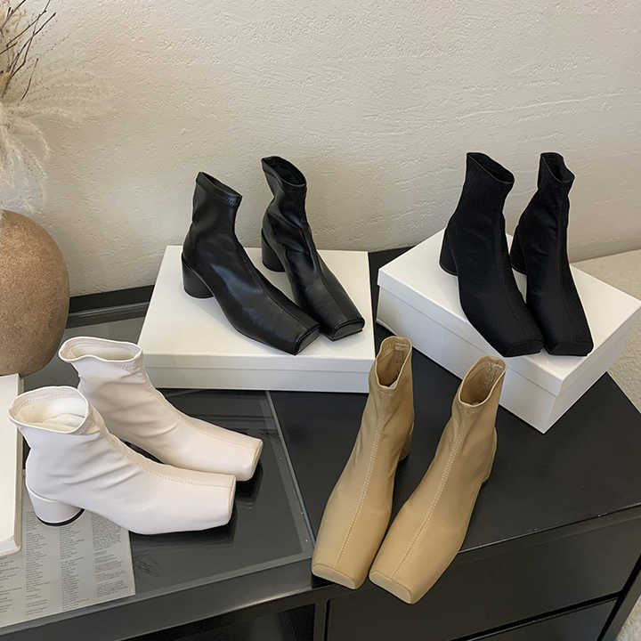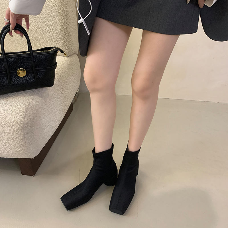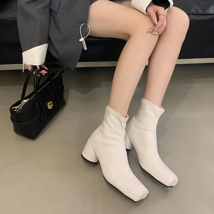 รองเท้าบูทสั้นแบบสวม ส้นหนา ใส่สบาย ทรงเข้ารูป สำหรับฤดูใบไม้ผลิและฤดูใบไม้ร่วง รุ่นปี 2025 สำหรับผู้หญิง