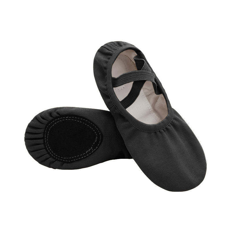 รองเท้าบัลเล่ต์ผ้าแคนวาสแบบยืดได้ รองเท้าเต้นรำแบบแบน พร้อมสายรัดยางยืดไขว้ สำหรับผู้หญิงและเด็กผู้หญิง