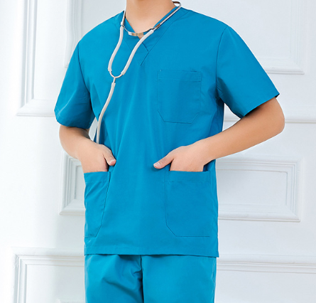 ชุดสครับผ้าฝ้ายยืดคอวีคุณภาพสูง รับสกรีนโลโก้ เหมาะสำหรับชุดยูนิฟอร์มโรงพยาบาลและชุดแพทย์พยาบาล