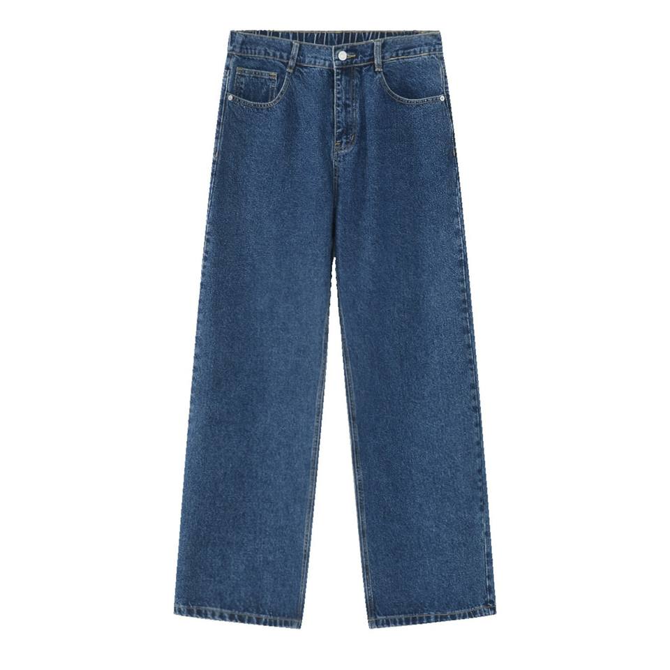 กางเกงยีนส์เดนิมคุณภาพสูงเอวสูงทรงหลวมสำหรับผู้ชาย กางเกงยีนส์ทรงตรงลำลองสำหรับผู้ชาย
