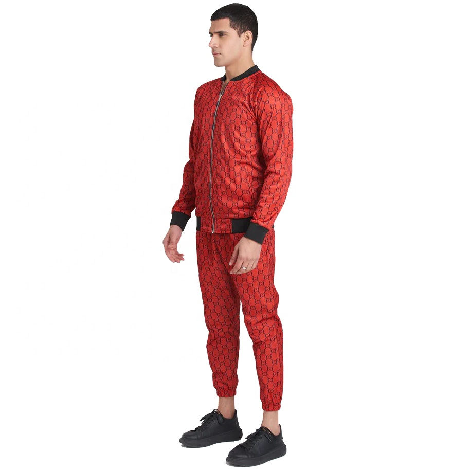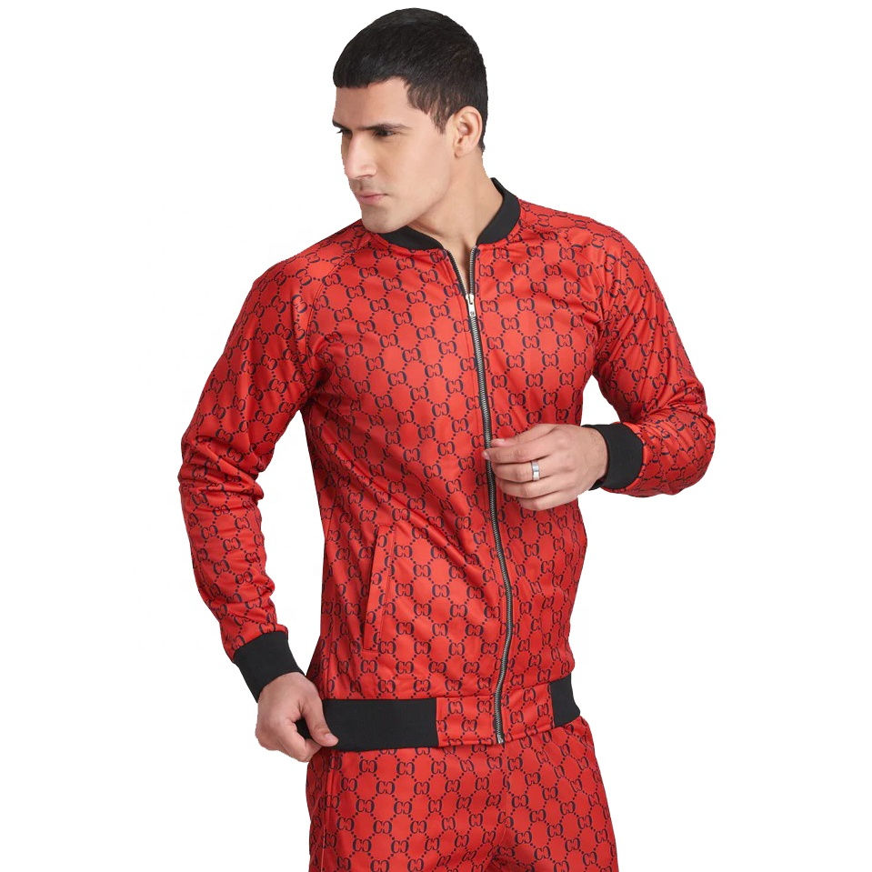 ชุดวอร์มผู้ชายแบบยืดได้พร้อมกางเกงจ็อกเกอร์และเสื้อแจ็คเก็ตมีซิปสำหรับวิ่งออกกำลังกายและสวมใส่ลำลองสไตล์สตรีทแวร์