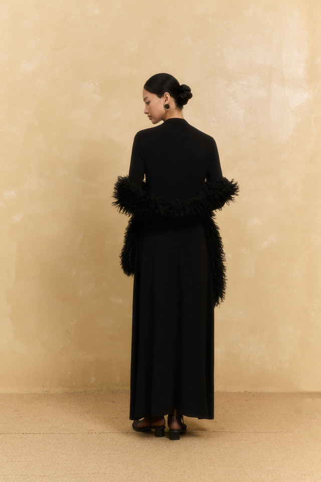 Stretchy Summer Woven Midi Turtle Neck Casual Regular Sleeve Striped Button Minimalist Simple Mousse Knit Black Dress ODM OEM