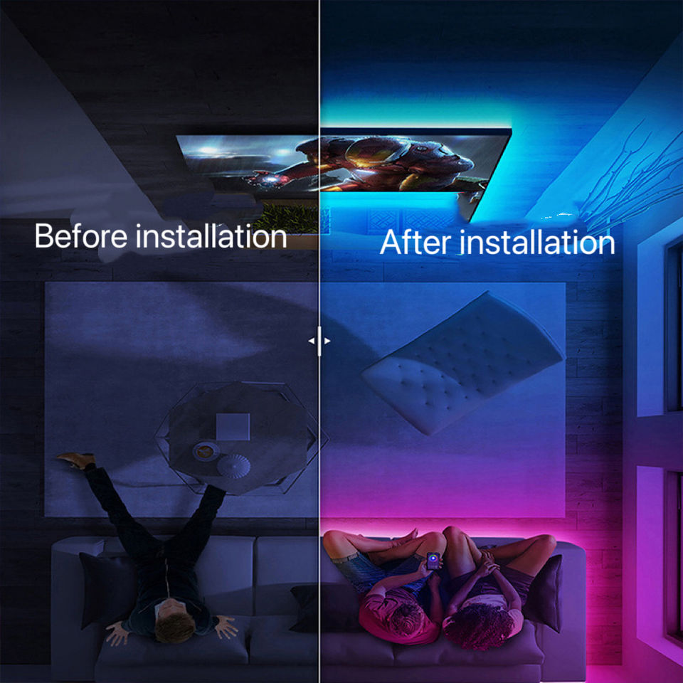 ไฟแถบซิงค์เพลงพร้อมรีโมทคอนโทรล โคมไฟแบบยืดหยุ่นสำหรับตกแต่งห้อง ปาร์ตี้ ทีวี โต๊ะทำงาน ห้องนอน