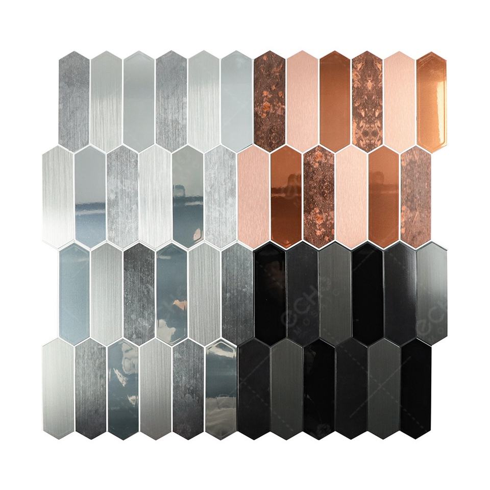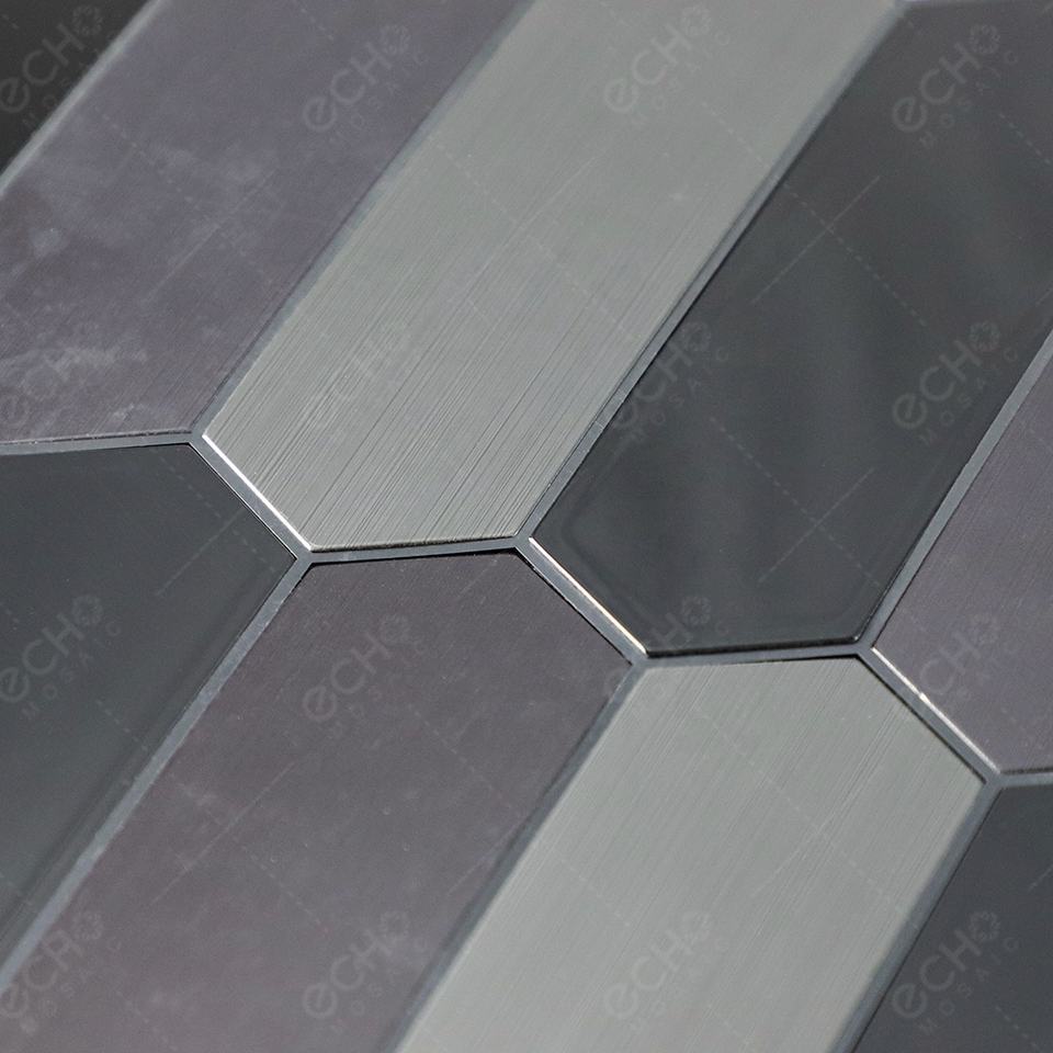 กระเบื้องโมเสคอะลูมิเนียมแบบลอกติด รูปทรงแถบ สีเทาเข้ม สำหรับตกแต่งผนังภายใน