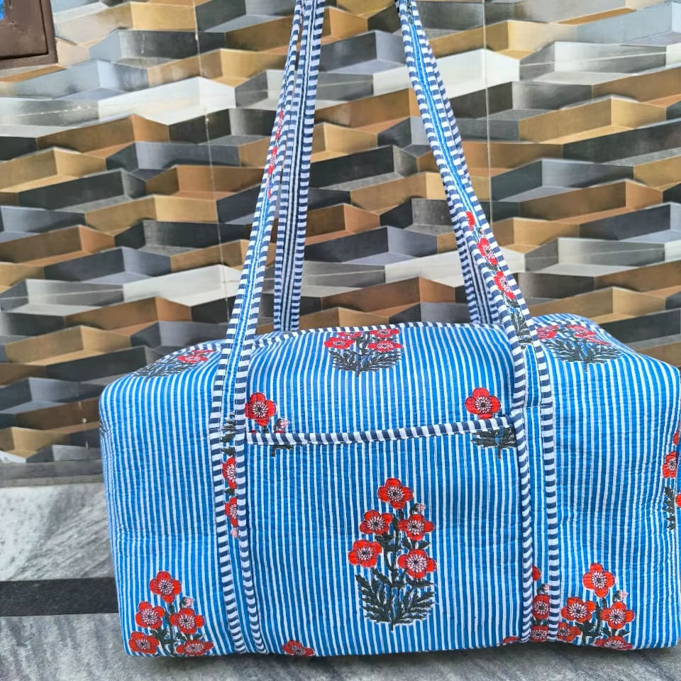 กระเป๋าเดินทางลายทางลายดอกไม้ สไตล์ลำลอง หรูหรา สำหรับเล่นกีฬา ทำจากผ้าฝ้าย เหมาะสำหรับวันหยุดสุดสัปดาห์ มีซิปปิด เป็นมิตรกับสิ่งแวดล้อม ทนทาน น้ำหนักเบา ขนาดใหญ่