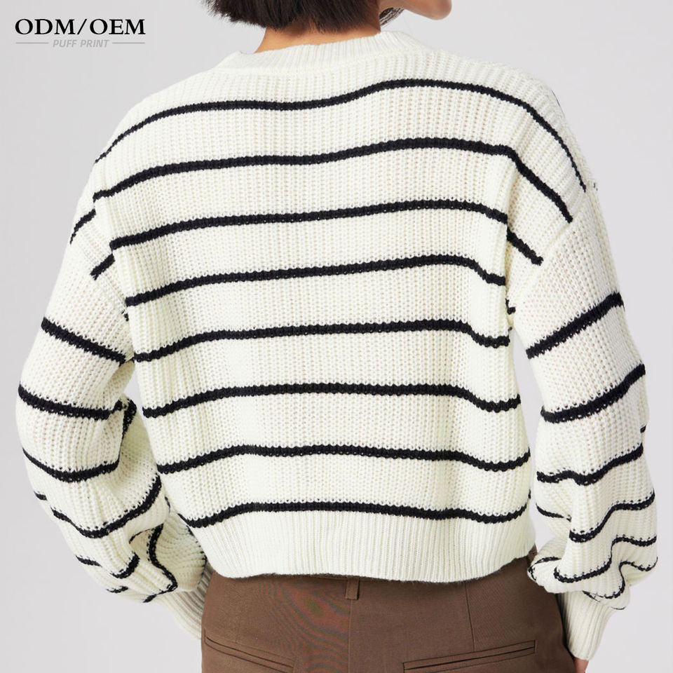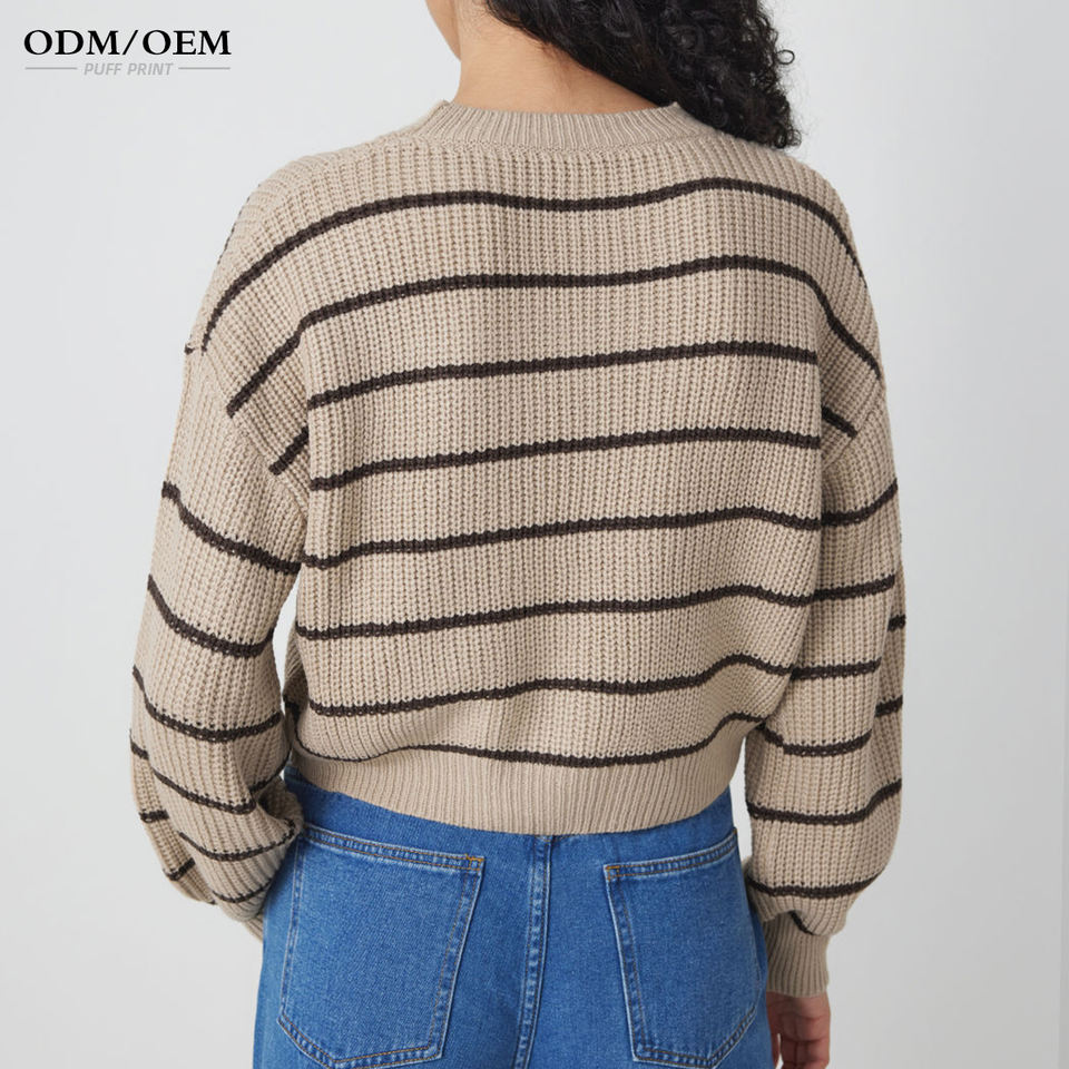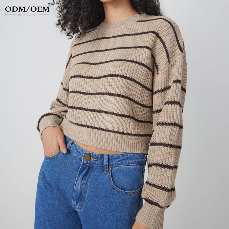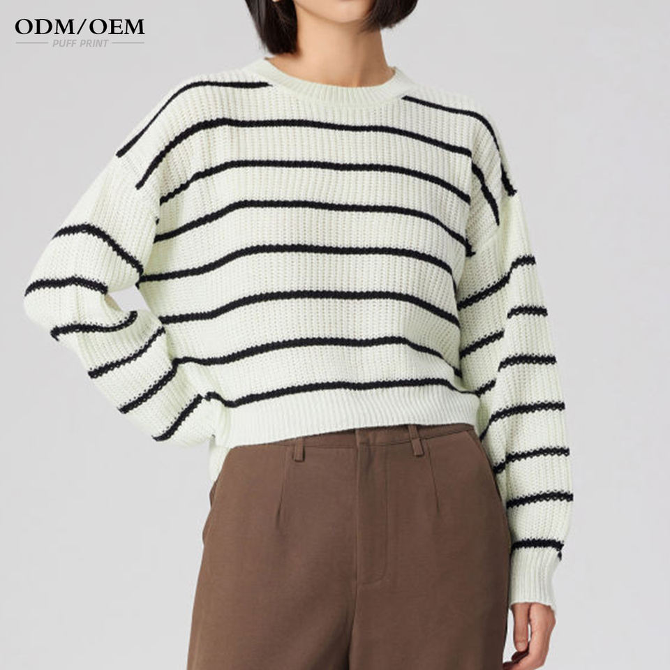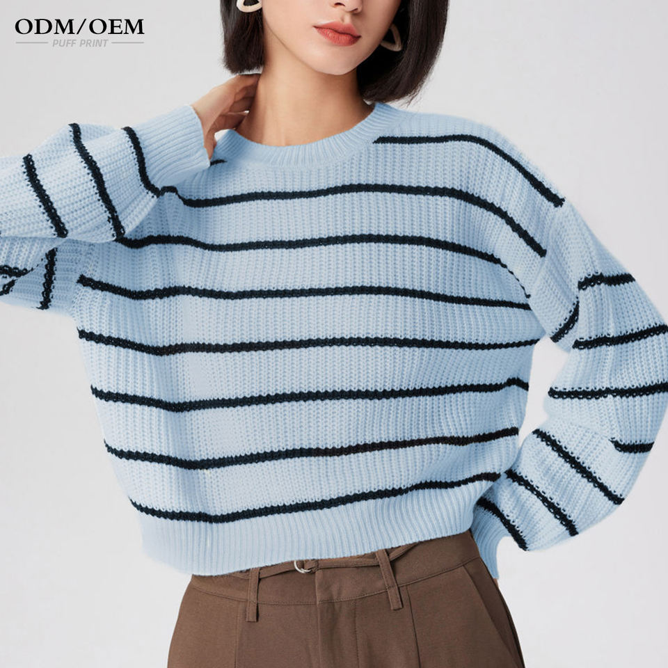 เสื้อสเวตเตอร์ลายทาง แขนยาว คอกลม สำหรับผู้หญิง เสื้อถักไหมพรม เสื้อไหมพรมถัก เสื้อพูลโอเวอร์ถักสำหรับผู้หญิง