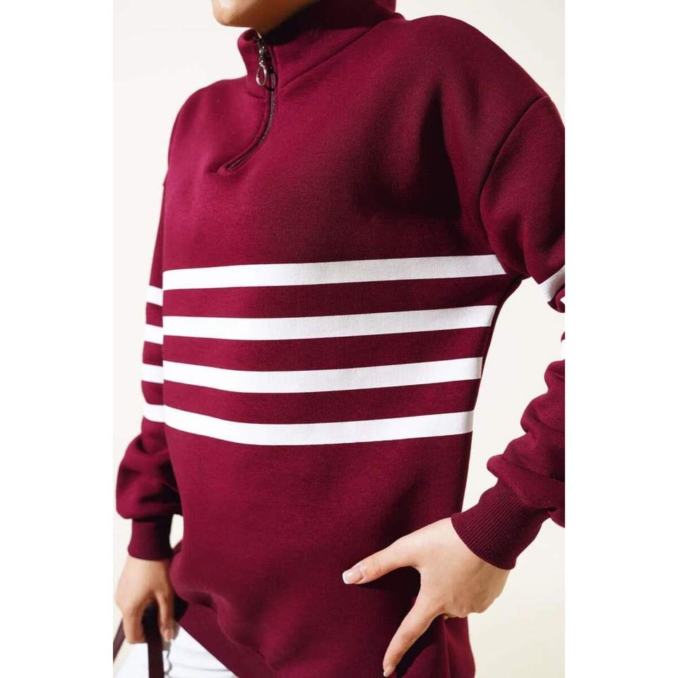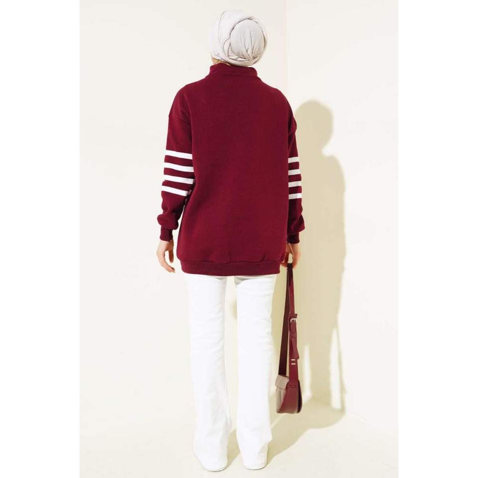 เสื้อสเวตเตอร์สามด้ายพิมพ์ลายทางมีฮู้ดขนสัตว์เบอร์กันดีเสื้อโค้ทสำหรับฤดูหนาวแบบปักลาย