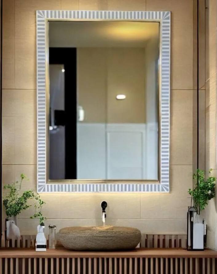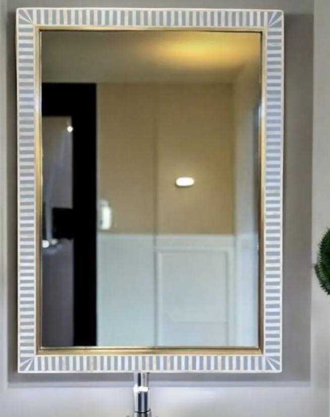 กระจกติดผนังลายกระดูกฝังลาย งานแฮนด์เมด ของตกแต่งบ้าน