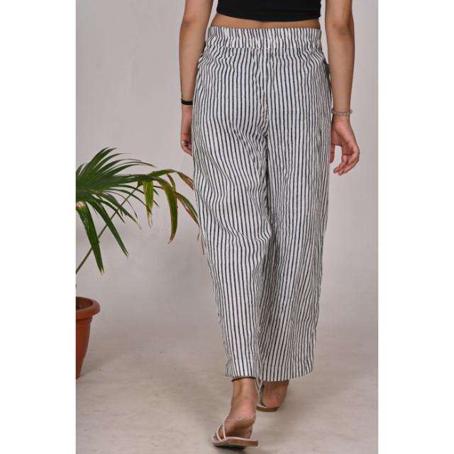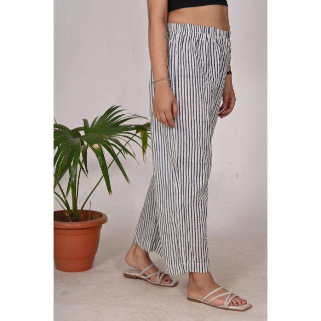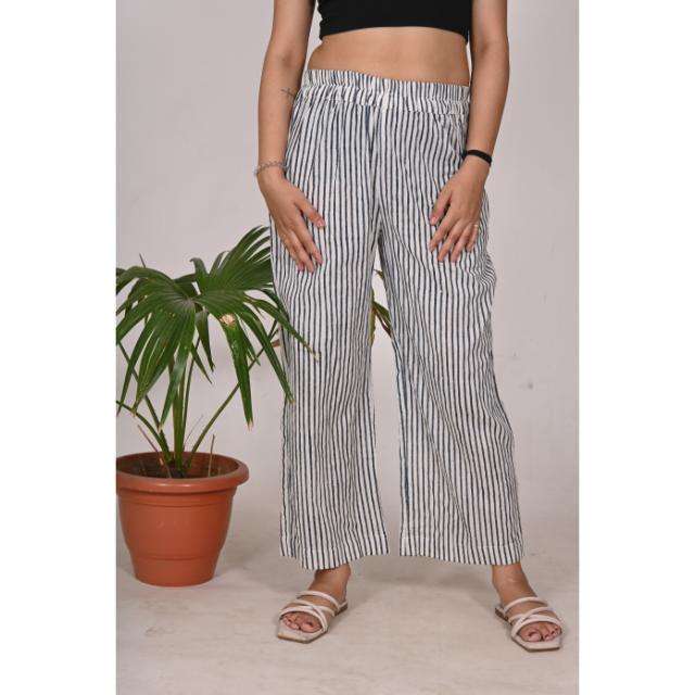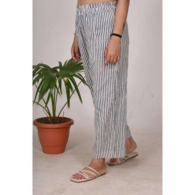 ชุดนอนผ้าฝ้ายลายทางสำหรับผู้หญิงชุดนอนทอมือเอวยางยืดน้ำหนักเบาและระบายอากาศได้ดี
