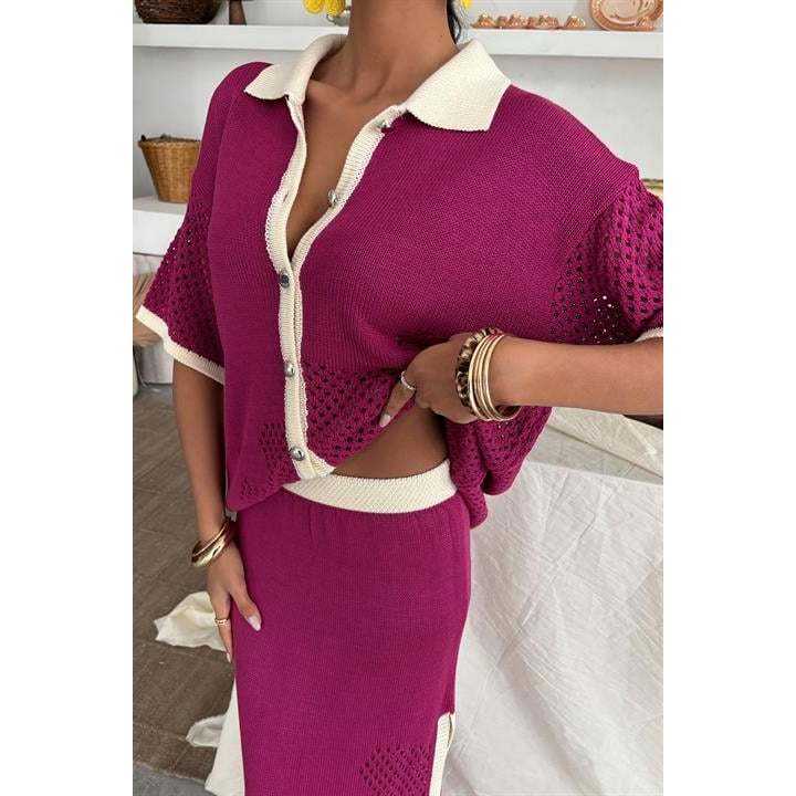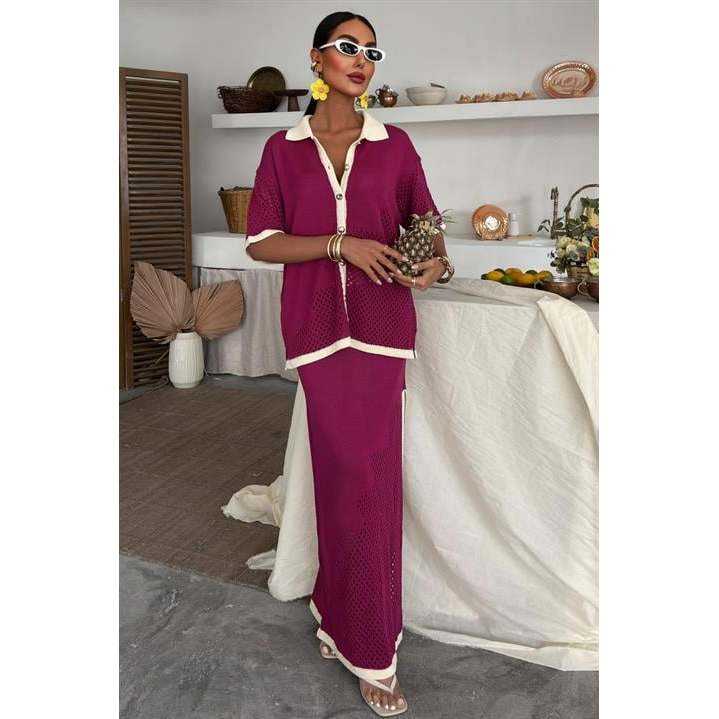 Striped Detail for Polo Collar Openwork Suit 10137 Breathable Feature