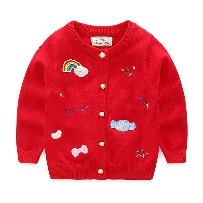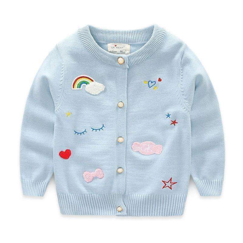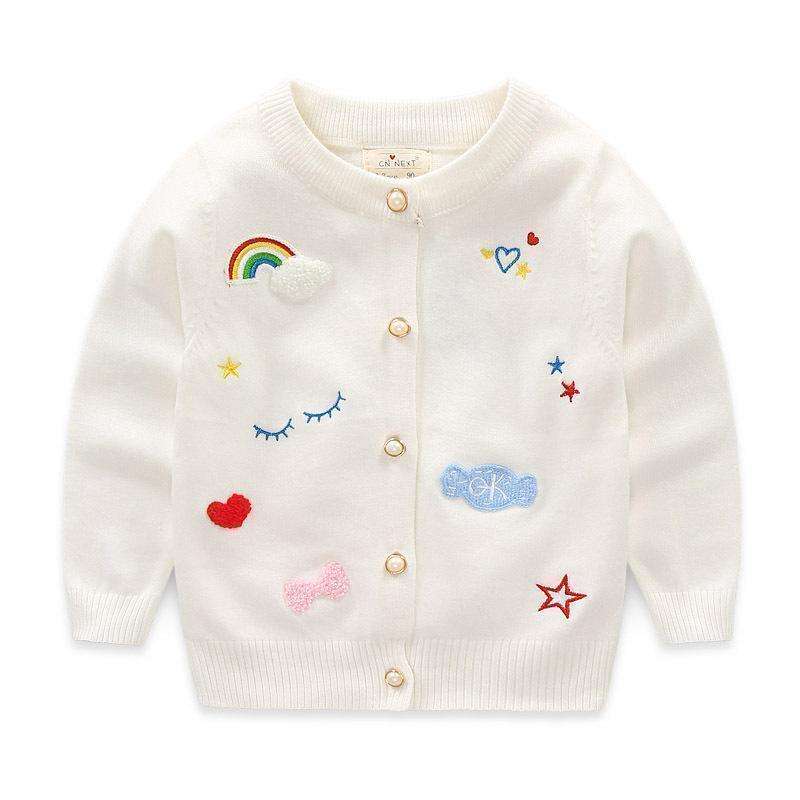เสื้อสเวตเตอร์คาร์ดิแกนดีไซน์ลายทางที่คอ สำหรับเด็กผู้หญิง