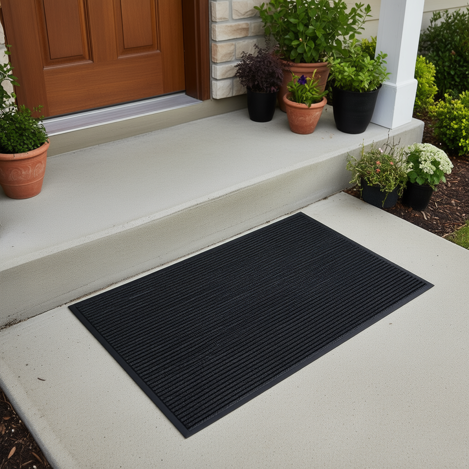 พรมเช็ดเท้าลายทาง PVC ขนาด 8 x 4 ฟุต ทนทาน ซักได้ ใช้ได้ทั้งภายในและภายนอกอาคาร รูปทรงสี่เหลี่ยมผืนผ้า ทันสมัย พร้อมแผ่นรองกันแบคทีเรีย