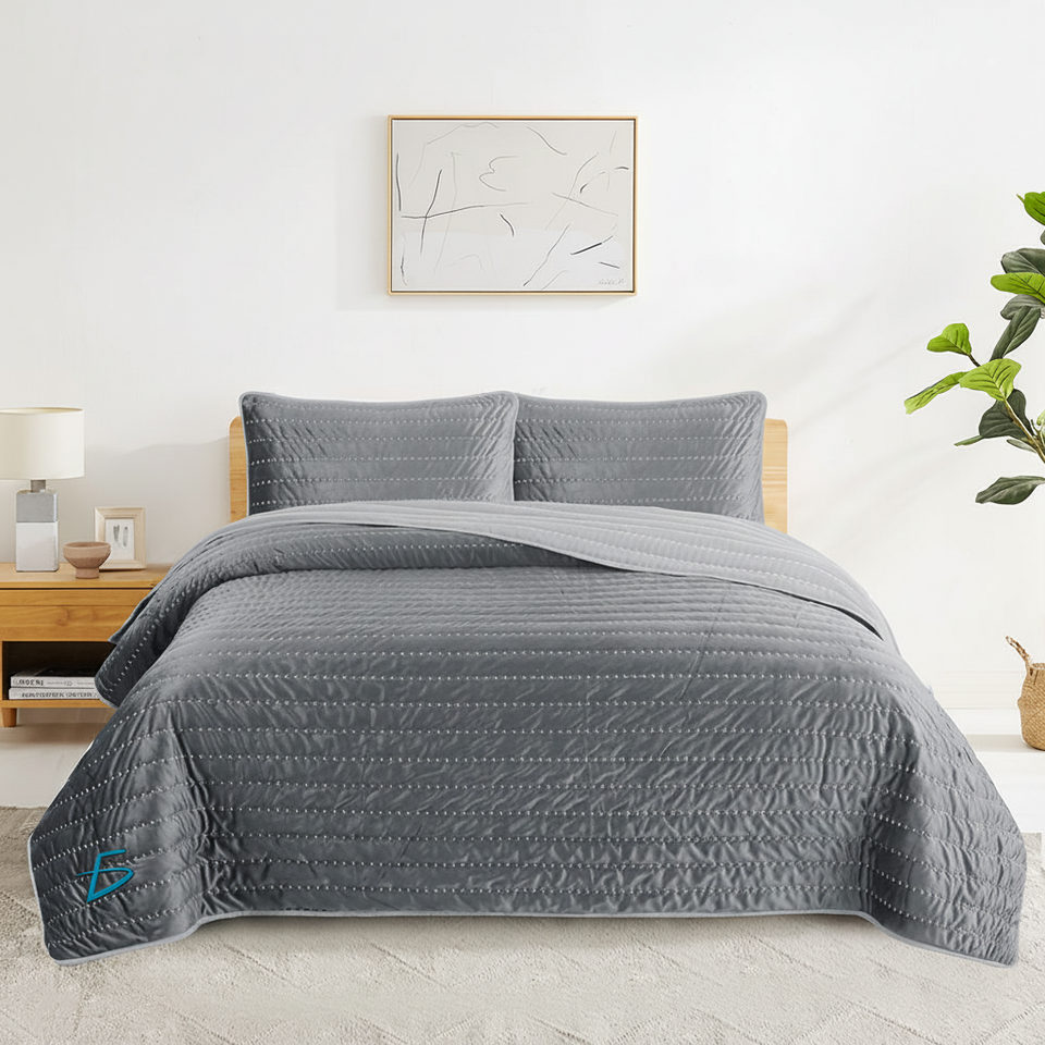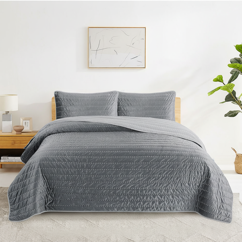 Striped Quilt and Pillowcase Set - Elegance and Comfort in a 3-Piece Set - 180*220, Grey