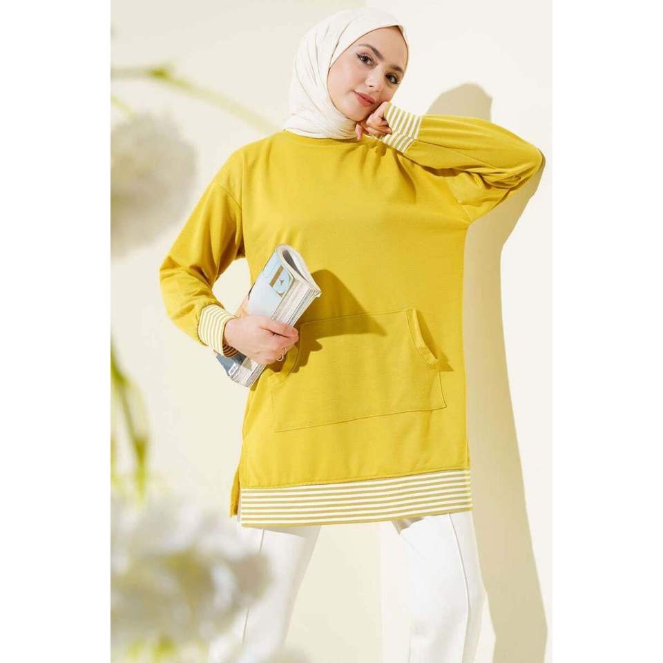 เสื้อจิงโจ้ลายทางมีกระเป๋าสีเขียวสีน้ำมัน