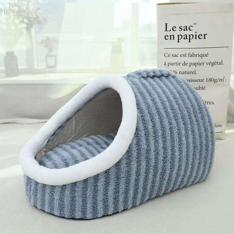 รองเท้าแตะกึ่งปิดล้อมลายทางเตียงสุนัขที่นอนสุนัขอบอุ่นในฤดูหนาว