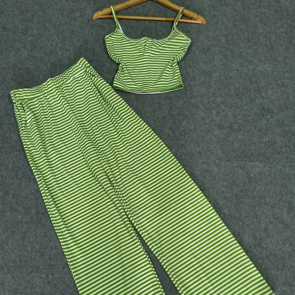 ชุดเซ็ตผู้หญิงลายทาง 2 ชิ้น ราคาโรงงาน เสื้อผ้าลำลอง ซักได้ บรรจุภัณฑ์แบบกำหนดเอง ผู้ผลิตจากเวียดนาม ผ้ามีความยืดหยุ่น