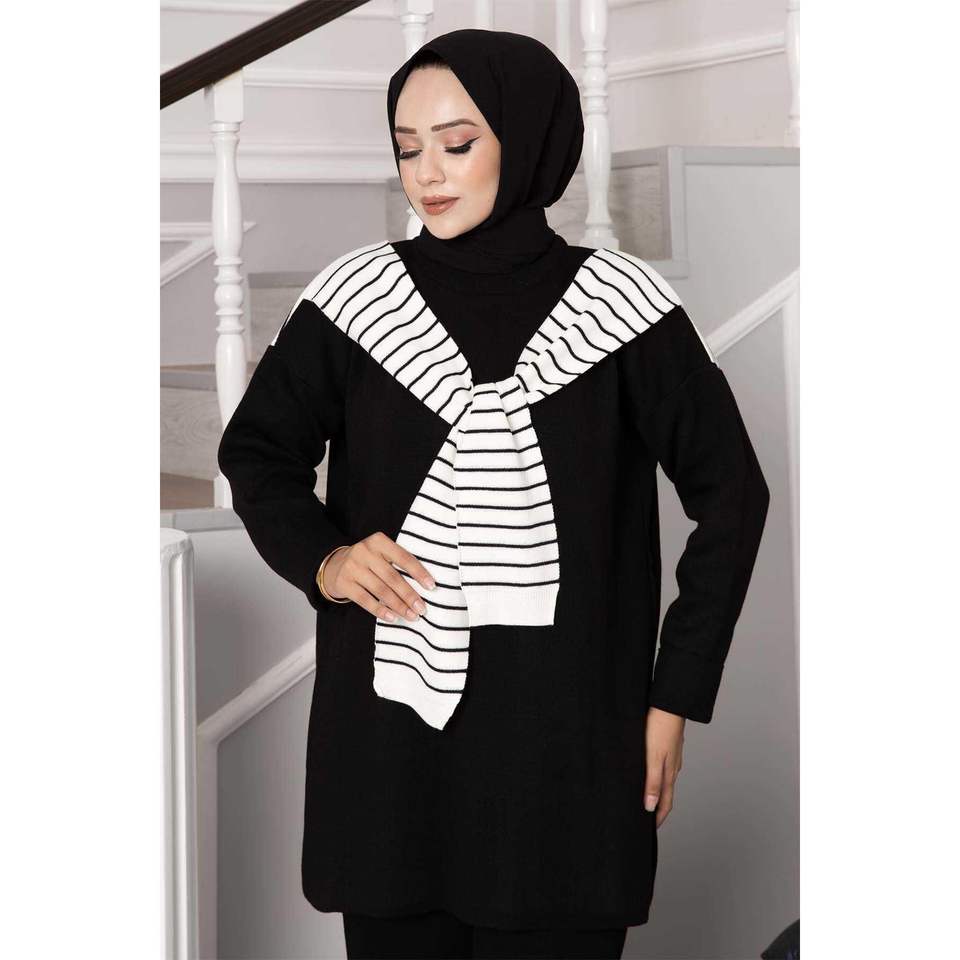 ชุดผ้าถักลาย2ชิ้นผ้าพันคอสีดำ