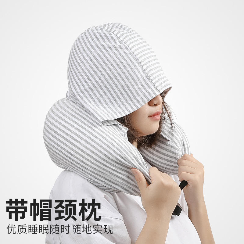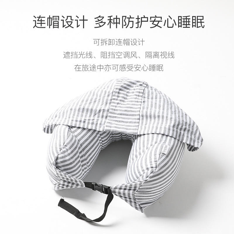 หมอนรองคอผ้าฝ้ายลายทางรูปตัวยู ขนาด 65x28 ซม. สำหรับงีบหลับบนเครื่องบิน