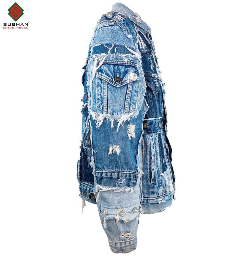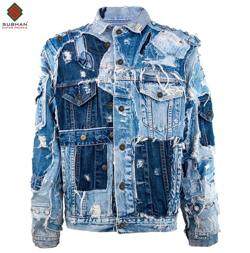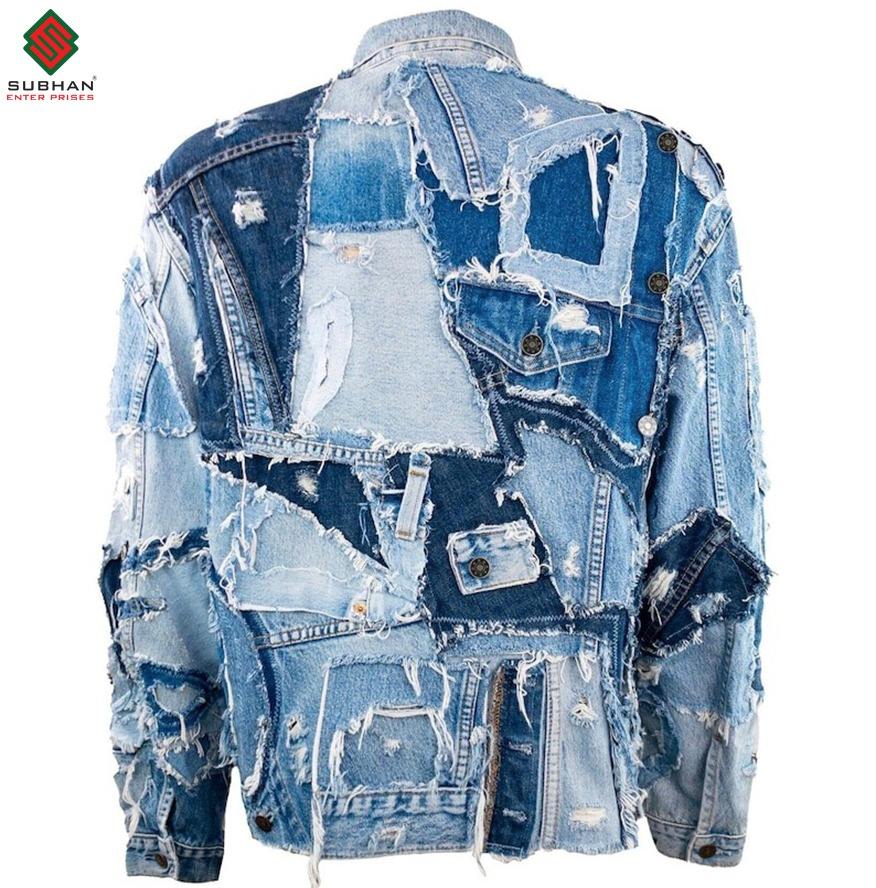 เสื้อแจ็คเก็ตยีนส์ลายทาง งานปะติด รีไซเคิลอย่างยั่งยืน สไตล์วินเทจ คุณภาพพรีเมียม