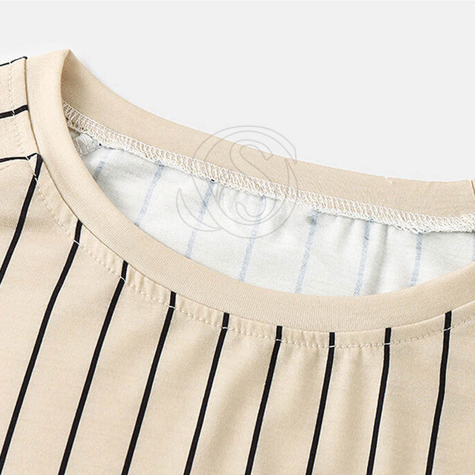 เสื้อยืดลำลองผู้ชายลายทาง ระบายอากาศ แห้งเร็ว พิมพ์ลายได้ตามต้องการ คุณภาพพรีเมียม ชุดเซ็ตขาสั้น ผลิตจากโพลีเอสเตอร์/คอตตอน จากโรงงาน