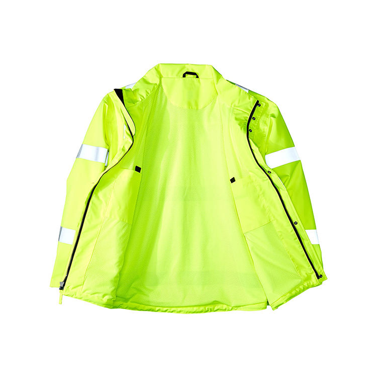 เสื้อแจ็คเก็ตนิรภัยลายทางแบบมีซิปสั่งทำพิเศษสำหรับผู้ชาย มาตรฐาน ANSI Class 2 ผลิตจากโพลีเอสเตอร์ ระบายอากาศได้ดี ดีไซน์ไฟ LED กระพริบ คุณภาพสูง ขายดี