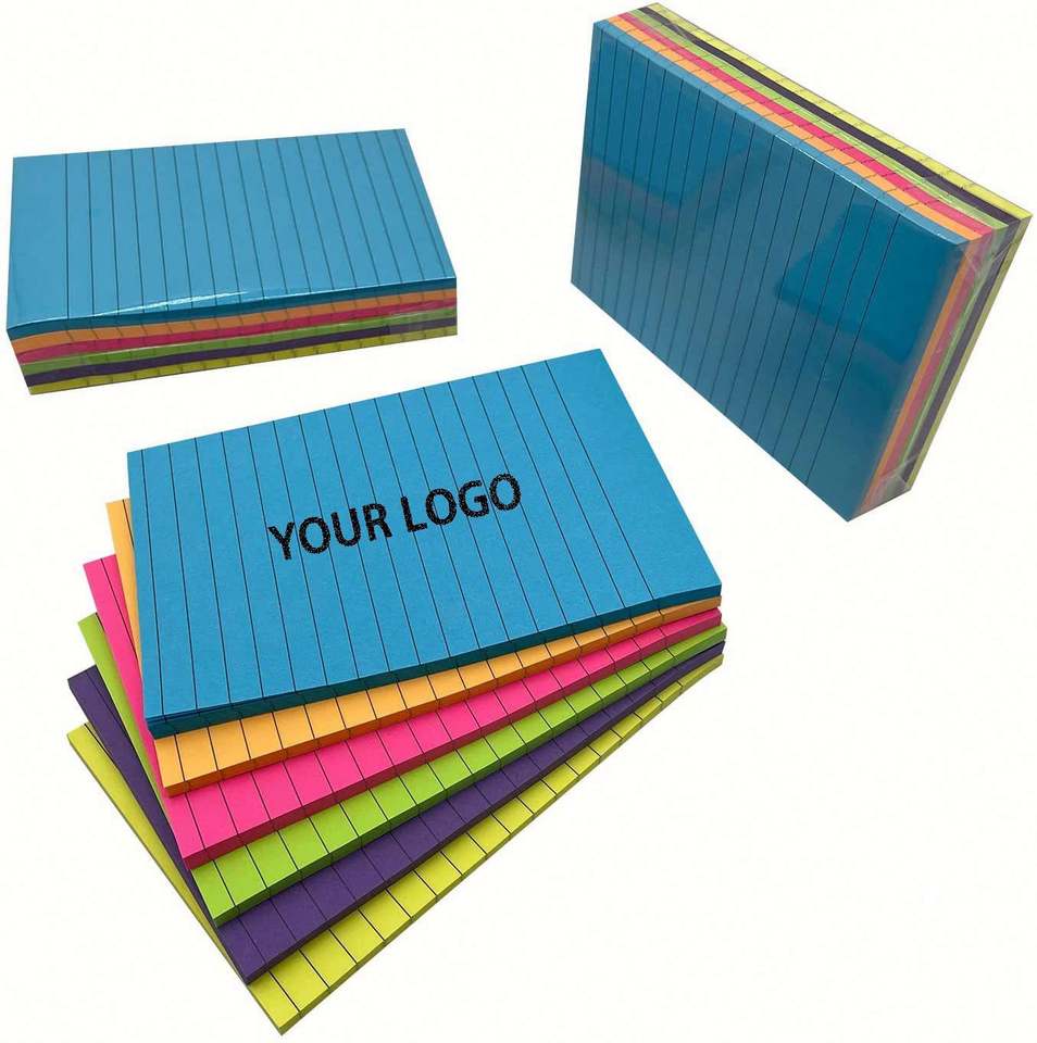 กระดาษโน้ตแบบมีเส้นสีสันสดใส กาวเหนียวแน่น แผ่นบันทึกข้อความแบบกำหนดเองได้