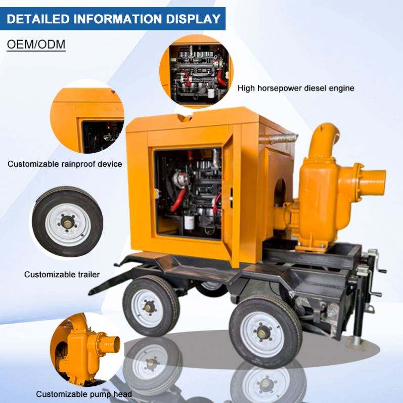 ปั๊มน้ำดีเซลกำลังสูง ป้องกันการอุดตัน สำหรับการขนส่งน้ำเสีย ควบคุมน้ำท่วม และระบายน้ำในเขตเมือง