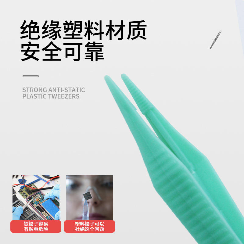 แหนบพลาสติกป้องกันไฟฟ้าสถิตย์ที่แข็งแรง 10.5 ซม. ปลายหยักตรง สีเขียว สีน้ำเงิน เกรดอุตสาหกรรม ใช้ในบ้าน