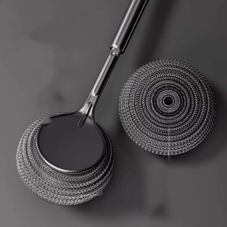 แปรงขัดหม้อด้ามจับยาวแปรงทำความสะอาดหม้อหม้อกระทะเหล็กลวดโลหะขัดทำความสะอาด