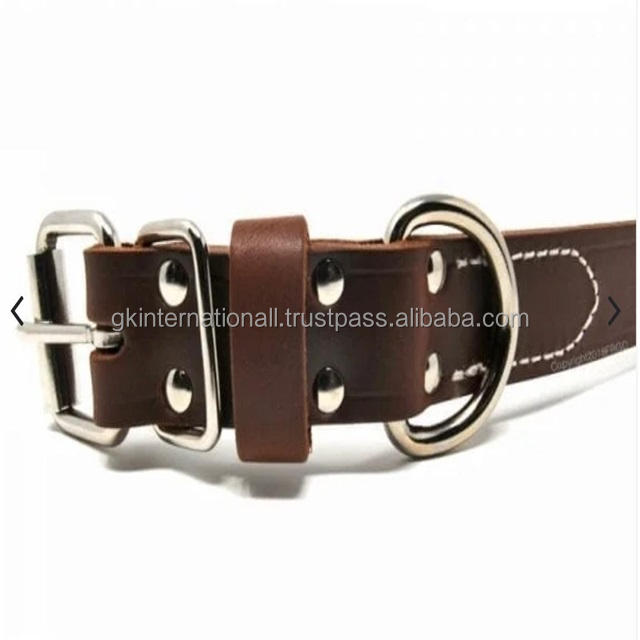 ปลอกคอสุนัขหนังแท้สีน้ำตาลพร้อมฮาร์ดแวร์นิกเกิลระดับพรีเมี่ยมทนทานดีไซน์ใหม่ตามสั่ง