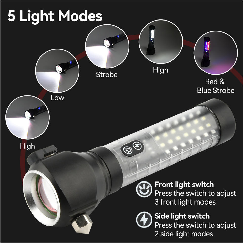 ไฟฉาย LED แบบชาร์จไฟได้ Strong Wolf ความจุ 1800mah ช่องเสียบ Type C ซูมแบบยืดหดได้ แสงความเข้มสูง พร้อมฟังก์ชั่นชาร์จโทรศัพท์