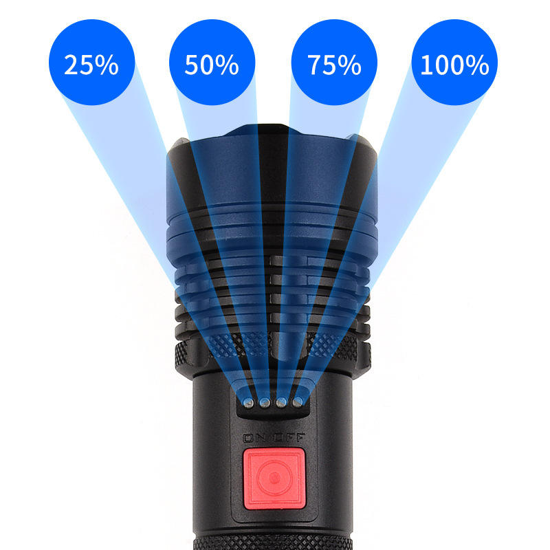 ไฟฉายซูมสตรองวูล์ฟ 2000mAh ไฟ LED สีขาวแบบชาร์จไฟได้พร้อมการชาร์จ USB และจอแสดงผลพลังงาน