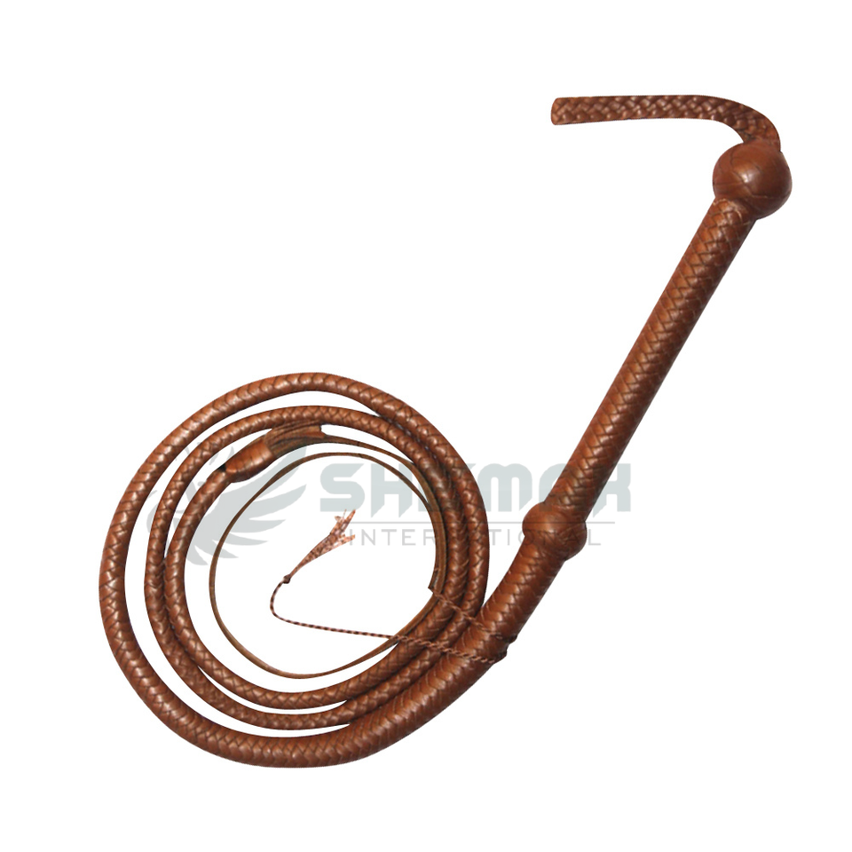แส้หนังแท้แข็งแรง พร้อมลายถักแบบตะวันตกสำหรับฝึกซ้อม ฝึกปฏิบัติ หรือใช้สำหรับคอสเพลย์ มีจำหน่าย