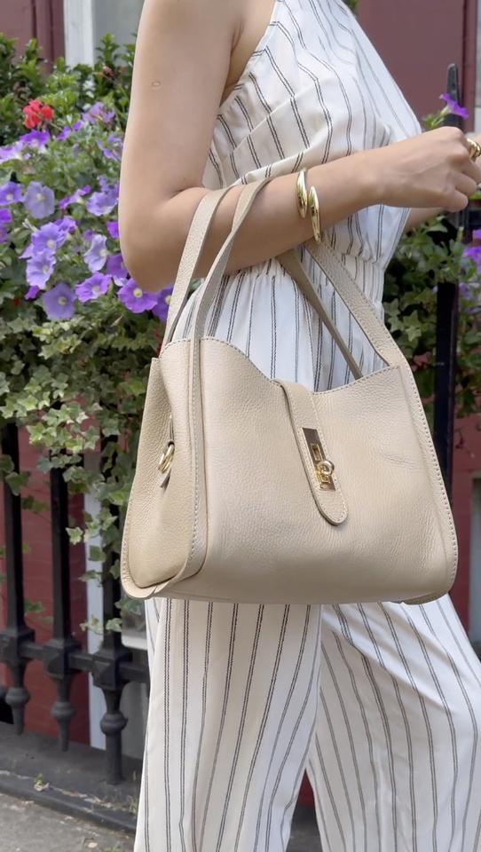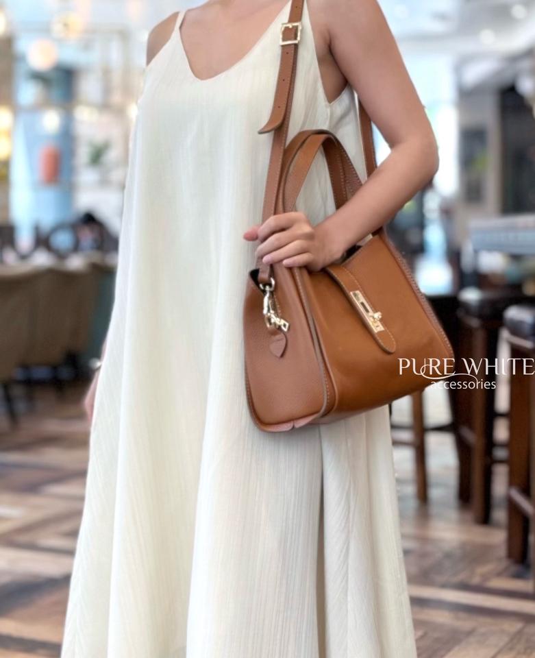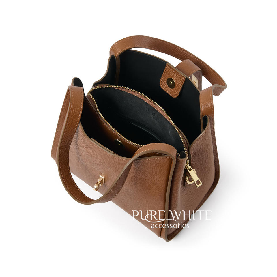 กระเป๋าสะพายไหล่ทรงโครงสร้างพร้อมตัวล็อคแม่เหล็กและตัวล็อคสีทอง – หนังแท้อิตาลี – งานแฮนด์เมด – PM648
