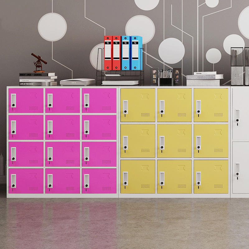 ตู้เก็บของนักเรียนแบบหลายประตู ตู้เก็บของโลหะพร้อมลิ้นชัก แบบตั้งพื้น 3 ชั้น ตู้เก็บเอกสารทรงสี่เหลี่ยม